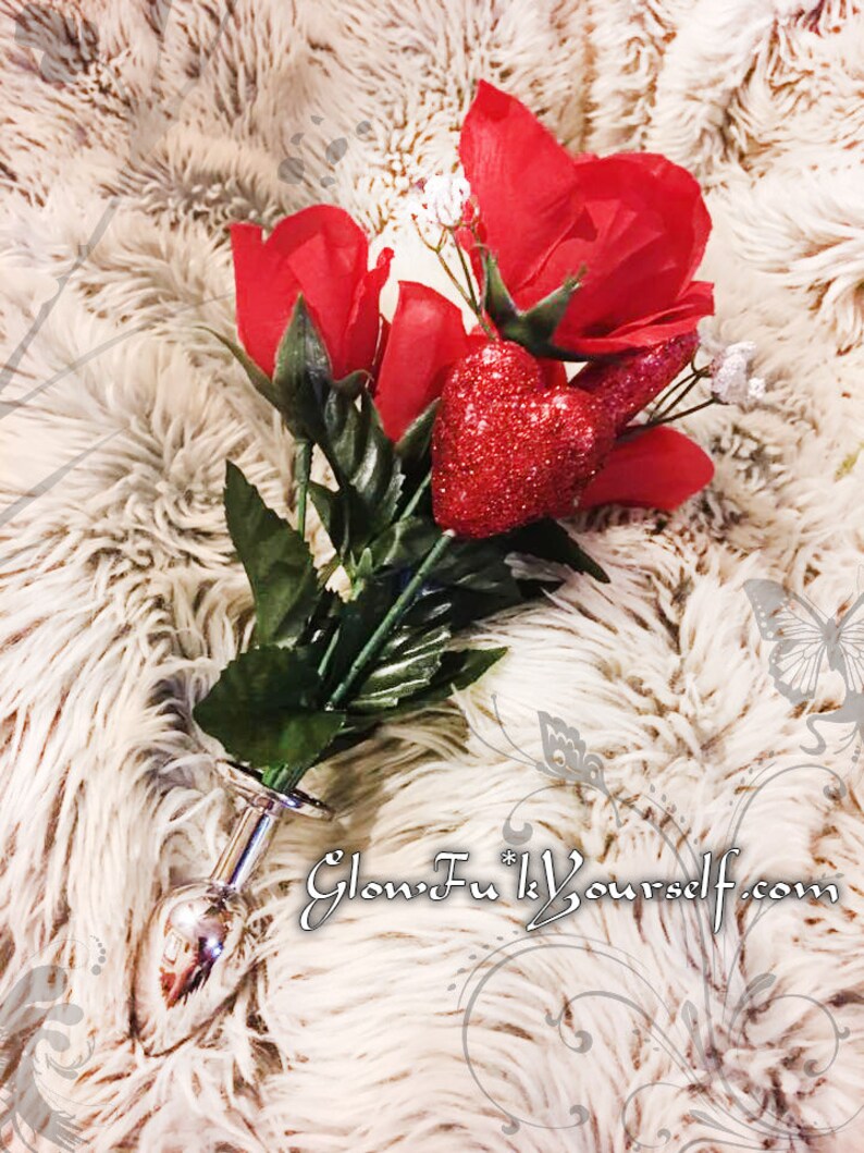 Red Rose And Rosebud Bouquet With Crystals Centres And