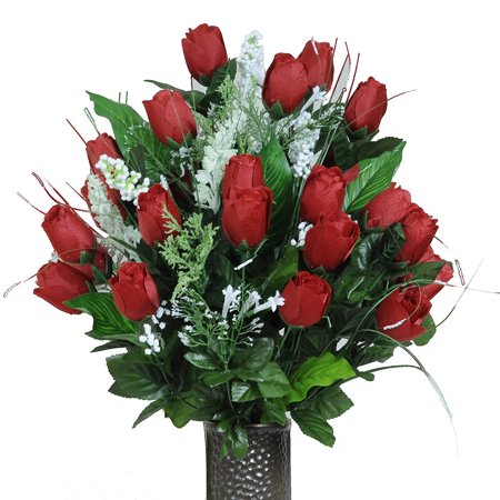 Red Rose Bud Artificial Bouquet Featuring The Stay In The Vase Design C Flower Holder Lg1089