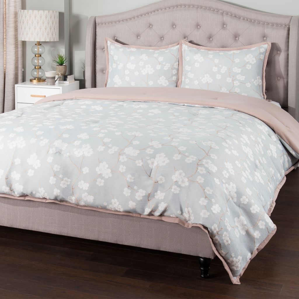 Grand Suites Cherry Blossom Jacquard 3 Piece Comforter Set Shophq