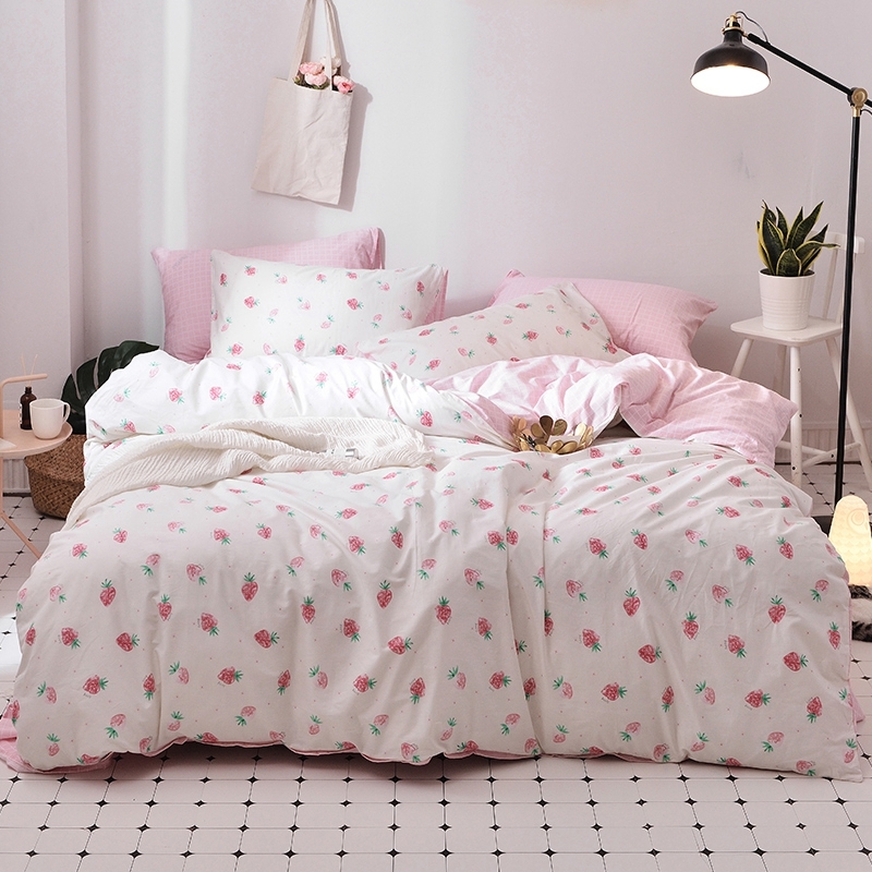 Cherry Blossoms Girls Duvet Cover Set 100 Cotton Pink Bed Sheet