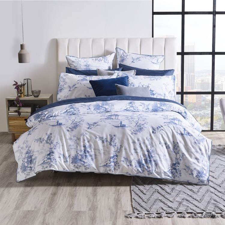 Logan And Mason Sakura Indigo Quilt Cover Set Sakura Indigo