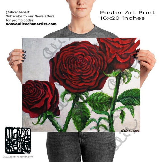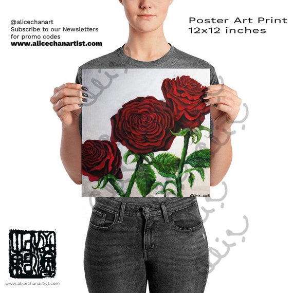 Floral Red Rose Art Print Wall Art Poster Print Made In Usa Red Rose Print Red Rose Wall Art Decor Romantic Red Rose Valentines Day Gift